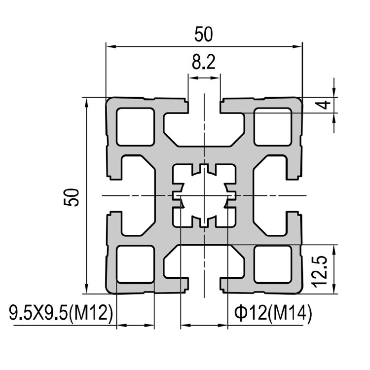 هذا البروفيل المصنوع من الألومنيوم المقوى بمقاس 50×50 مم يتميز بتصميمه القوي بأربعة فتحات من نوع T على كل جانب. يتميز بطبقة أنودة سوداء تزيد من مقاومة التآكل وتوفر مظهرًا احترافيًا. مثالي للتطبيقات الصناعية مثل الهياكل الآلية، وأطر المعدات، والمنشآت المعيارية، حيث يسمح تصميمه بتوصيلات مرنة وسريعة من جميع الاتجاهات.