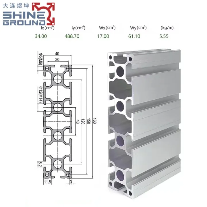 Dimensions & Design : 40 mm x 160 mm cross-section with 10 precision T-slots for multi-directional component mounting and easy integration. High-Strength Material : Made from 6000-series aluminum alloy (e.g., 6063) for exceptional durability, corrosion resistance, and structural stability. Lightweight Efficiency : Approximately 5.55 kg/m for easy handling and installation without sacrificing strength. Adaptable Surface Options : Available in mill finish, anodized, or powder-coated finishes to suit environmental and aesthetic needs. Modular Assembly : Enables tool-free, rapid construction of frameworks, reducing project time and costs. Versatile Applications : Ideal for industrial automation (conveyors, robotic arms), machinery guards, and custom architectural projects.