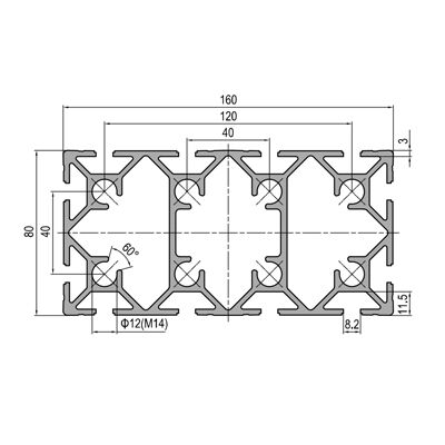 This 80x160mm heavy-duty T-slot aluminum profile is engineered for industrial structural applications requiring exceptional strength and modular flexibility. Featuring 12 precision-engineered T-slots, it enables versatile multi-directional assembly for constructing robust frameworks such as machine guards, material handling systems, and large-scale workstations. Manufactured from corrosion-resistant 6000-series aluminum with an anodized finish, it ensures long-term durability in demanding environments.