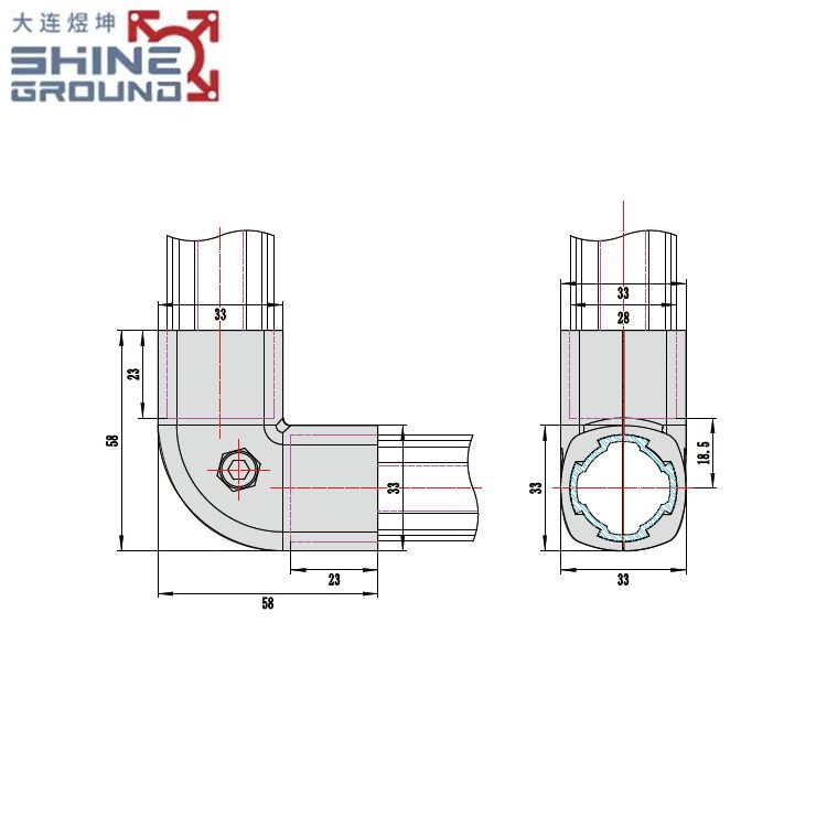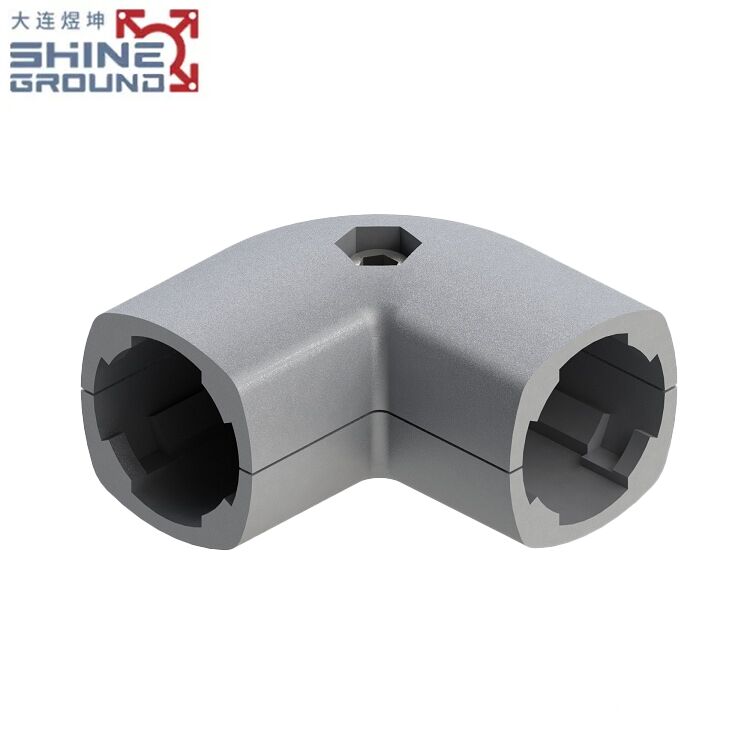 Precise Angling : Creates exact 90° connections between pipes, ensuring structural stability. Tool-Simple Installation : Secures with standard M6 hex tools (screws/nuts included in some kits). Durable Construction : Cast from corrosion-resistant ADC-12 aluminum alloy, suitable for workshops. External Clamp Design : Mounts over pipe exteriors without internal inserts, compatible with T-slot pipes. Modular Flexibility : Integrates with other connectors (cross, parallel) for custom frameworks.