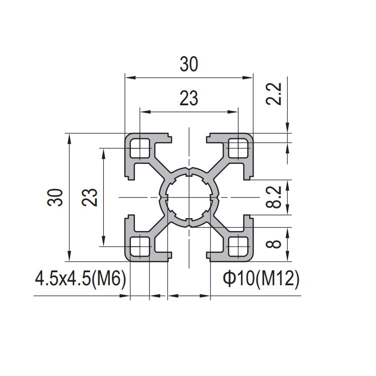 The Aluminium Profile 3030 is a versatile structural component designed for modular framing systems. Its 30mm x 30mm square profile features four integrated 8mm T-slots, enabling easy, tool-free assembly without welding. Manufactured from high-strength aluminum alloy and finished with a protective anodized coating, this profile offers an optimal balance of robustness, lightweight handling, and corrosion resistance. It is ideally suited for constructing industrial automation frames, workstations, safety enclosures, and DIY projects.