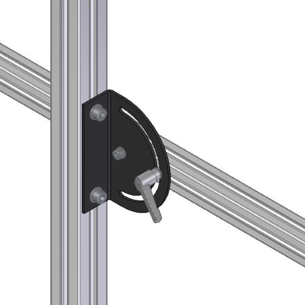 During installation, first fix the connecting plate to an industrial aluminum profile with fasteners, then adjust the other industrial aluminum profile to a suitable angle and lock it with an adjusting wrench.