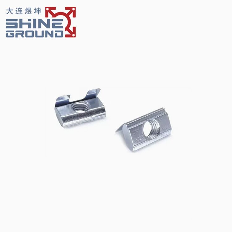 Tool-Free Installation : Insert directly into T-slot openings without pre-drilling or disassembly, reducing assembly time. Spring Retention : Integrated spring leaf exerts constant pressure against the slot walls, preventing displacement during use. High Strength : Carbon steel construction with zinc plating offers corrosion resistance and load capacity comparable to T-nuts. Versatile Compatibility : Suited for standard aluminum profile slots (e.g., 6mm/8mm grooves) in framing, machinery guards, and workstations. Reliable Fastening : Maintains position in vertical or overhead orientations, ensuring stable bolt connections.